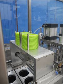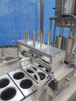 杯盒灌裝封口機(jī)從送杯、充填、液位控制、放蓋、兩次封口、推杯、輸送為全自動作業(yè)。