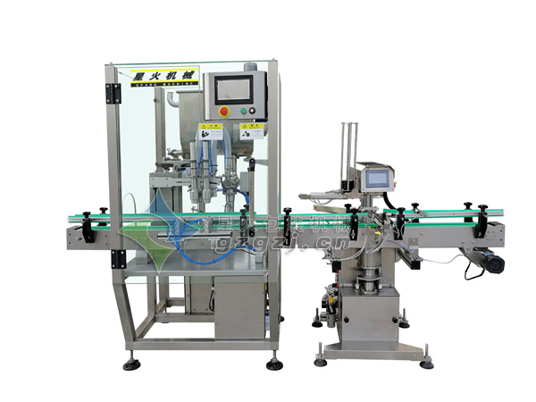 全自動(dòng)醬料灌裝旋蓋一體機(jī)是星火包裝機(jī)械自主研發(fā)的新型集灌裝,真空旋蓋于一體的全自動(dòng)灌裝旋蓋一體機(jī)。該機(jī)適用于辣椒醬、香菇醬等醬類灌裝然后真空旋蓋,自動(dòng)化程度高,機(jī)器能完成自動(dòng)灌裝、自動(dòng)取蓋上蓋,自動(dòng)真空封蓋封口