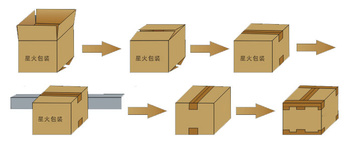 第三步:完成一字型封箱后,轉(zhuǎn)入角邊封箱機(jī),進(jìn)行四角邊封箱;